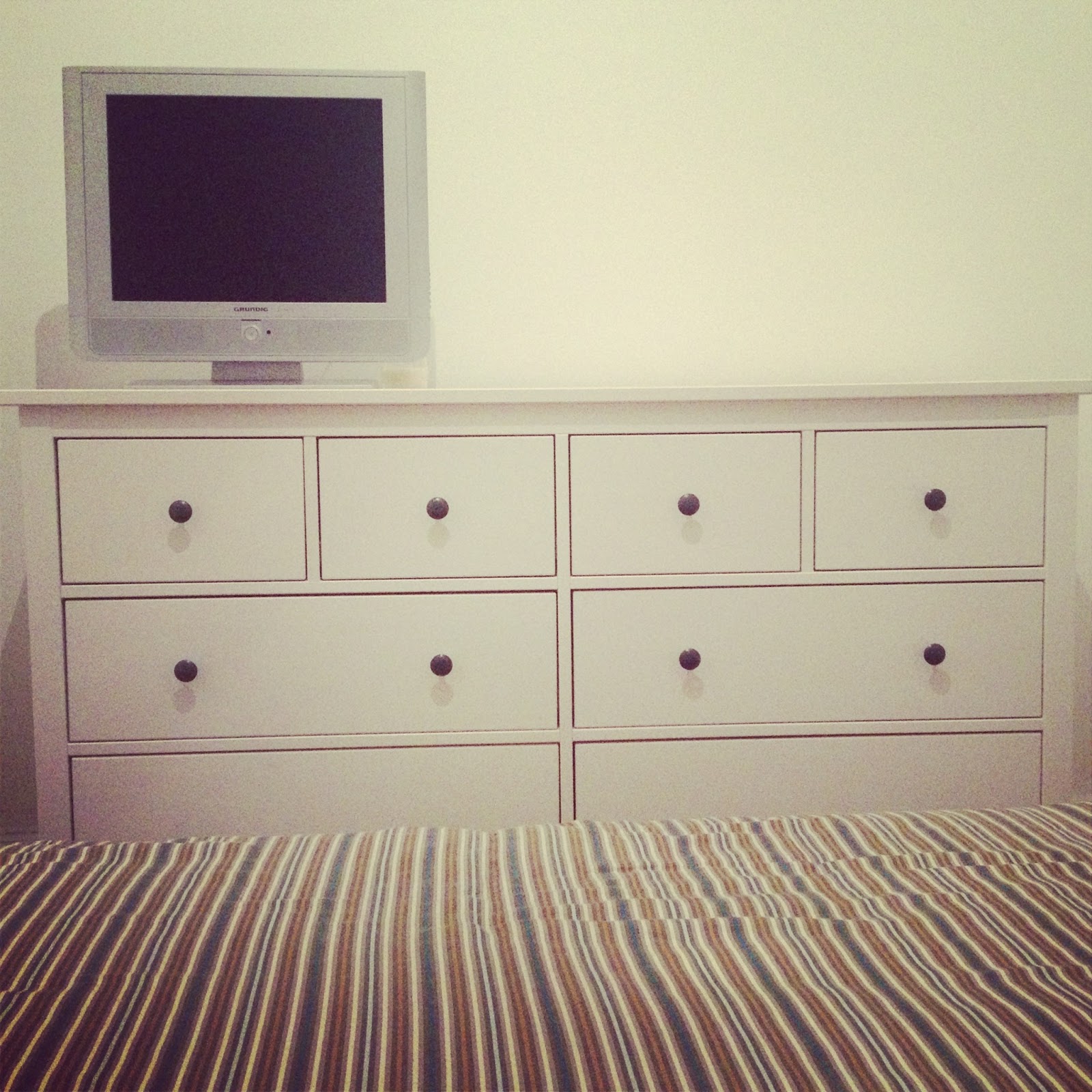 … Foi uma maratona, mas a segunda fase da ‘operação cosmética’ do meu apartamento, que se transformará num lindo apartamento de charme vão no bom caminho. Depois da pintura, chegaram os primeiros moveis. Onde antes estava um horroroso armário preto e impessoal, agora está um bonito aparador de sala em tons cinzento mate. No quarto, eu tinha um móvel de duas prateleiras sem explicação (até estavam tortas com o peso!!!) agora tenho uma cómoda grande, gira – acabei por comprar a branca (obrigado pela ajuda!)… Mas não fica por aqui. Ainda não vos contei de que cor pintei a parede do quarto na parte da cabeceira da cama… Surpresa!!!!