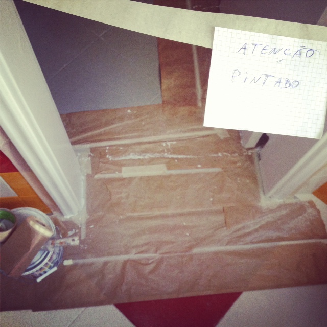 … Há dias resolvi que o meu apartamento de Lisboa (acho que já vos tinha dito) precisava de uma operação de cosmética. Fui à internet descobri uma empresa e toca a pintar e a arranjar a casa… no entanto, os senhores muito simpáticos fizeram o seu serviço mas, esqueceram-se da portada casa de banho. Resolveram vir hoje acabar o serviço… e a que horas? Ás sete da manhã… e eu pergunto, como tomo banho com dois homens a pintarem a porta da casa de banho… Bem, entretanto sai de casa, fui registar o euromilhões, receber um premio da lotaria do Natal e eles la se foram embora. Quando cheguei tinha este papelinho… ou seja, não posso entrar na minha casa de banho. Eles voltam depois de almoço!