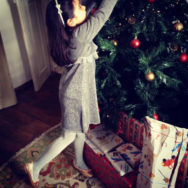 … A vida vai ensinado cada um de nós a viver o Natal, não como o queremos, mas como ela nos oferece. O papel nem sempre é o mais colorido e o recheio nem sempre o que queremos e muitas vezes nem é o que merecemos. Mas somos crescido, tentamos entender. Disfarçamos um ou outro desencanto com a emoção de as ver a elas viver a quadra. O Natal é delas. o Natal é das crianças… Cabe a cada um de nós fazê-las acreditar. A Leonor vive a quadra na euforia própria da idade. Cabe-me a mim preencher-lhe os sonhos, dosear-lhe as vontades. Que o Natal seja brilhante, como a roupa que ela escolheu para este dia. Dourado e prateado. ‘Veio de Paris!’, grita a todos encantada!